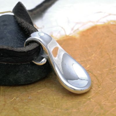 純銀を幾度となく叩いて形成した無骨な六角のトップです。