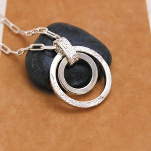 プレーンの小さなリングと唐草をあしらった大きなリングが一つになったトップです。