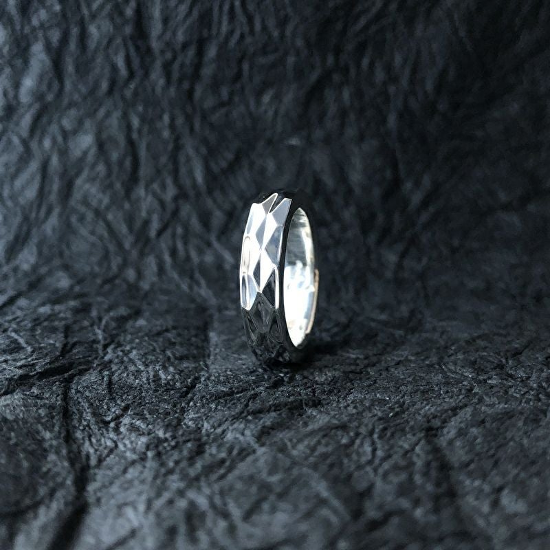 ござの目の様な斜めの鎚目を施したリング。