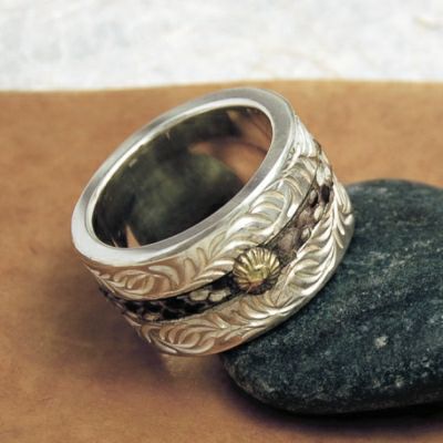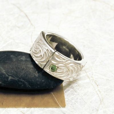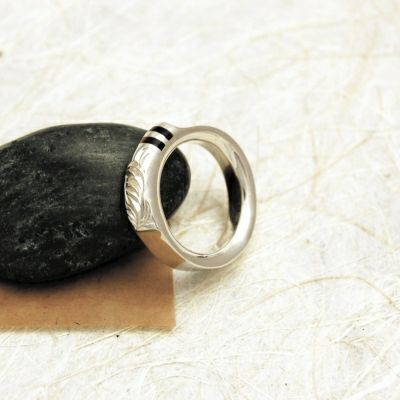 甲丸に叩きを入れた唐草リングです。