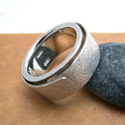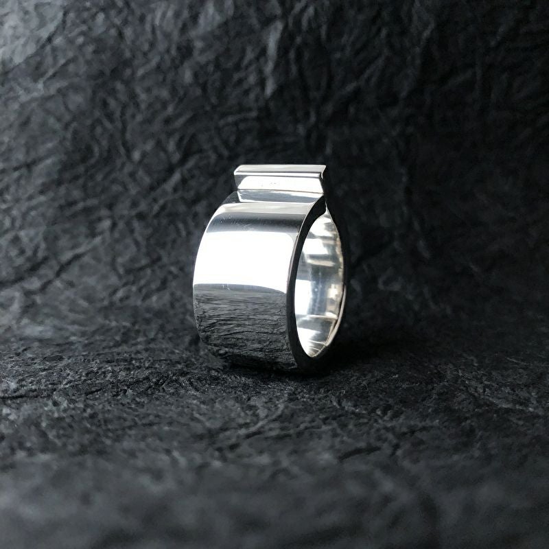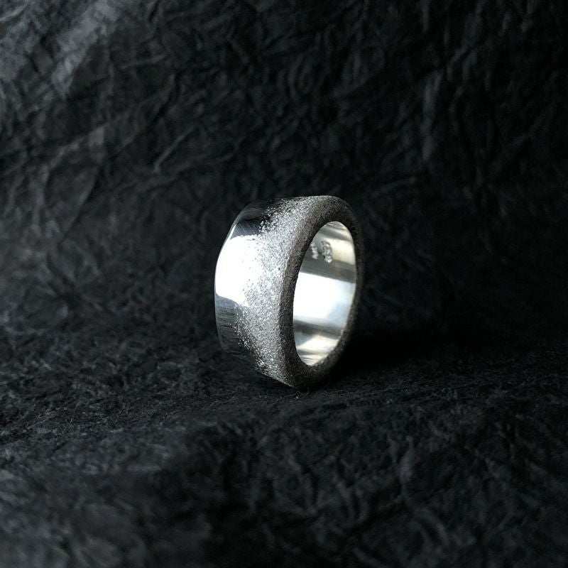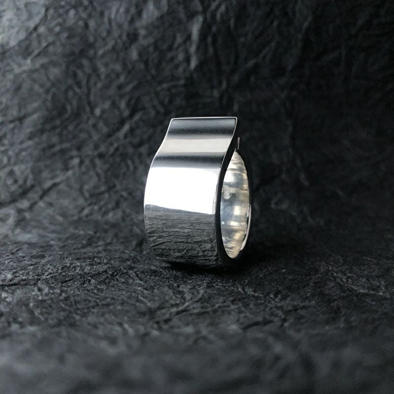 繊細な和紙地プレートを巻いた、存在感のある幅広リング。