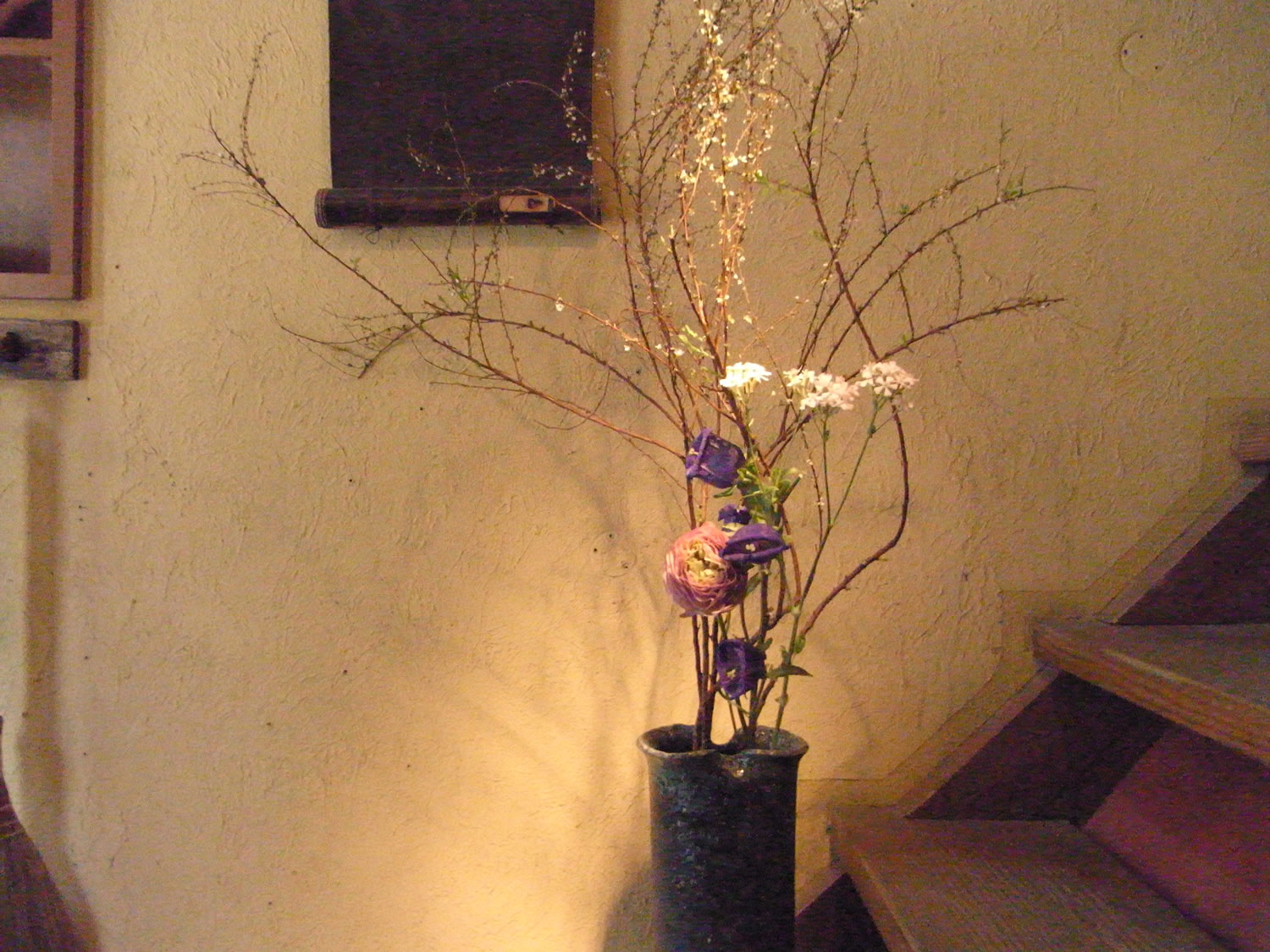 ラナンキュラス、桜小町、リンドウ 2014/03/12(水) 今週の瓶花 啓蟄(けいちつ)を経て暖かな日差しを期待していましたが、 まだまだ寒さの残る日々が続きますね。 春が待ち遠しく沢山の計画ばかりが思いを巡ります。 そんな逸る気持ちを、桜小町がこっそり覗かせています。