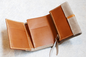 古来より剣道の防具に用いられている焼き擦りされた鹿革の柔軟性を活かした折り財布です。