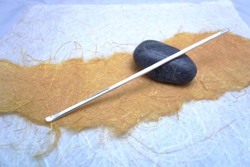 手造りの耳掻きです。素材はSV950を使用し、丁寧に仕上げました。柄の部分には和紙地が施されております。