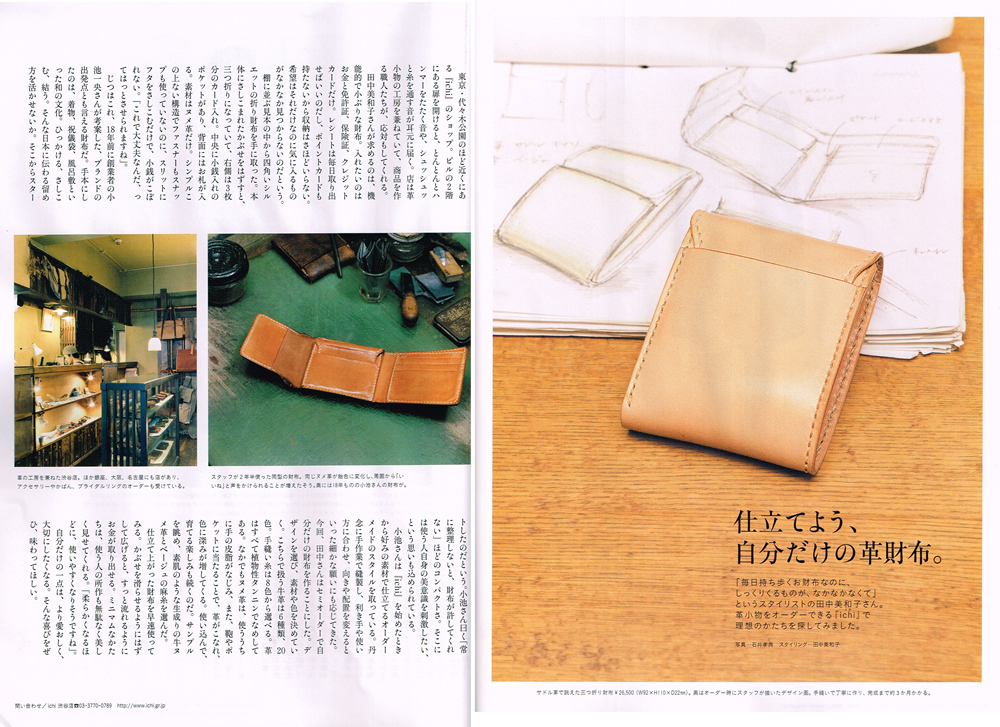 「毎日持ち歩くお財布なのに、しっくりくるものが、なかなかなくて」というスタイリストの田中美智子さん。革小物をオーダーできる『ichi』で理想の形を探してみました。